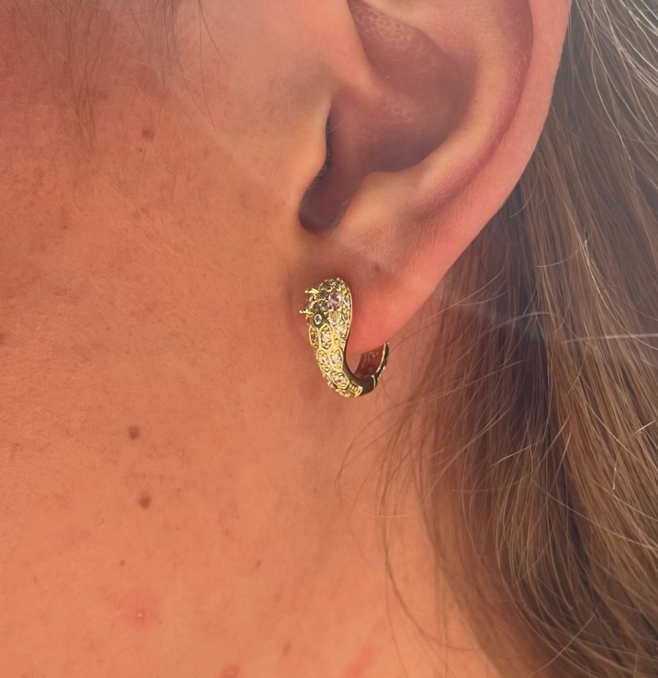 Ørepynt med gullfarget overflate.